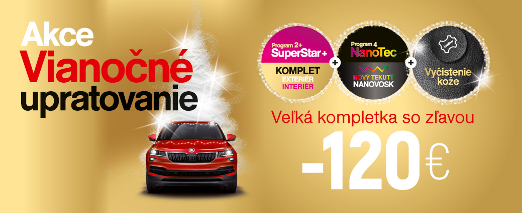 Balík je zložený z programov 2+SuperStar+ + program 4. NanoTec + Ošetrenie a vyčistenie kožených sedačiek.